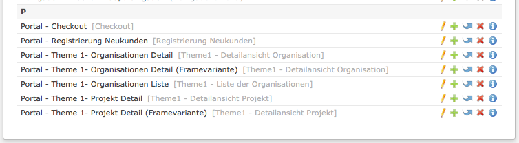 | Organisation | Beinhaltet die Detailansicht einer Organisation sowie die Auflistung aller Projekte der Organisation |